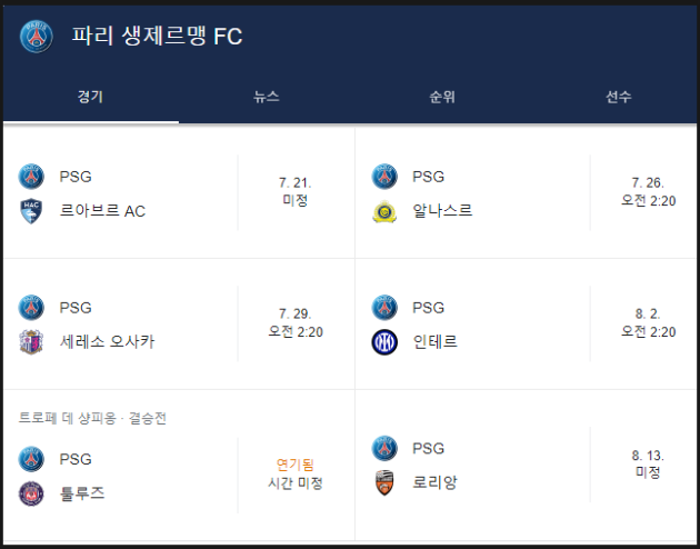 | 7.22 (토) 00:00 PSG VS. 르아브르 AC (Campus PSG) |